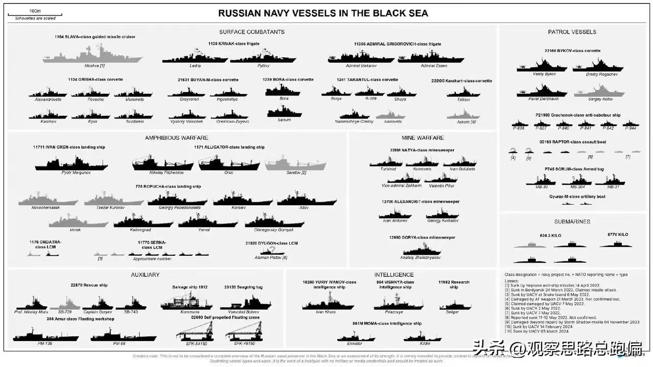 看着这些战果俄罗斯就突然神武了?并不是哈,俄罗斯黑海舰队一如既往的在填补乌克兰的战果,自从开战以来,俄罗斯黑海舰队的舰艇数量,可是有节奏的被乌克兰削减。之前的旗舰、巡洋舰、护卫舰、潜艇等等真可谓是品种齐全。
