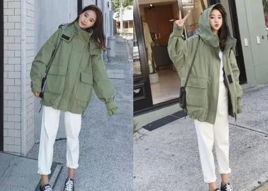 皮肤黑的朋友穿军绿色的上衣超级的好看又显白,非常衬托肤色还能提高气质呢~军绿色的上衣搭配白色休闲裤,超级时尚又好看,也是一款很适合皮肤黑朋友的色系搭配哦!