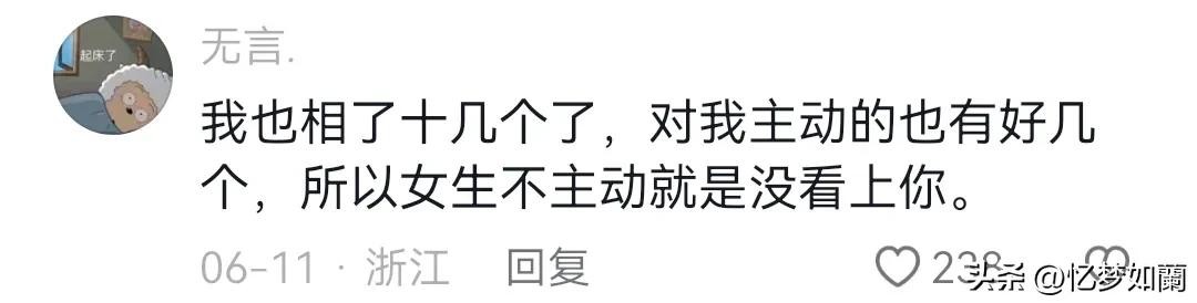 我也相了十几个了,对我主动的也有好几个,所以女生不主动就是没看上你。