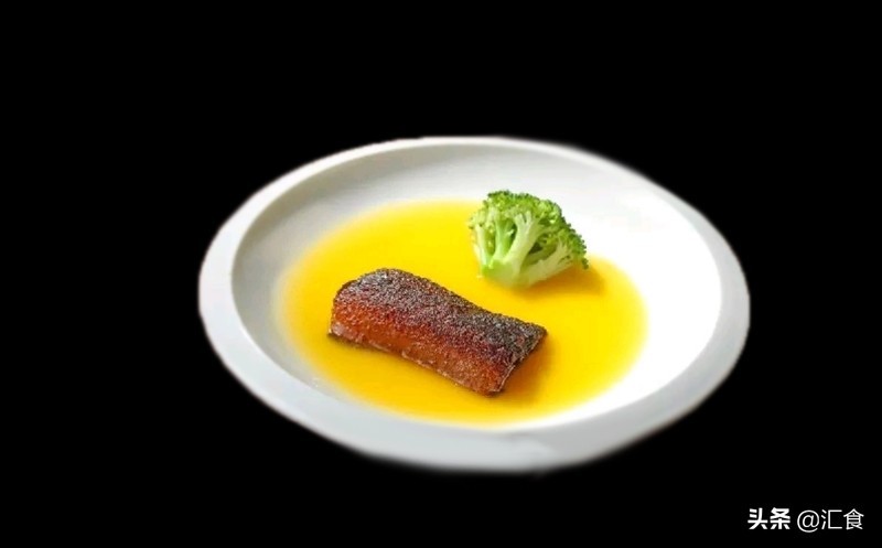 将猪婆参用火枪烧一下,刮掉外皮,放入料酒、葱段、姜片、生抽、汤水大火烧开后关火浸泡,反复水发三天后备用。发好的猪婆参倒入高汤、料酒、葱、姜、蚝油、盐、生抽煨制半个小时后捞出。将猪婆参捞出切成块,拍上天妇罗粉,用6成热油温炸上色,炸制酥脆捞出控油。 西兰花焯水后捞出备用,将炸好的猪婆参装盘,边上放上西兰花,浇上金汤汁即可。