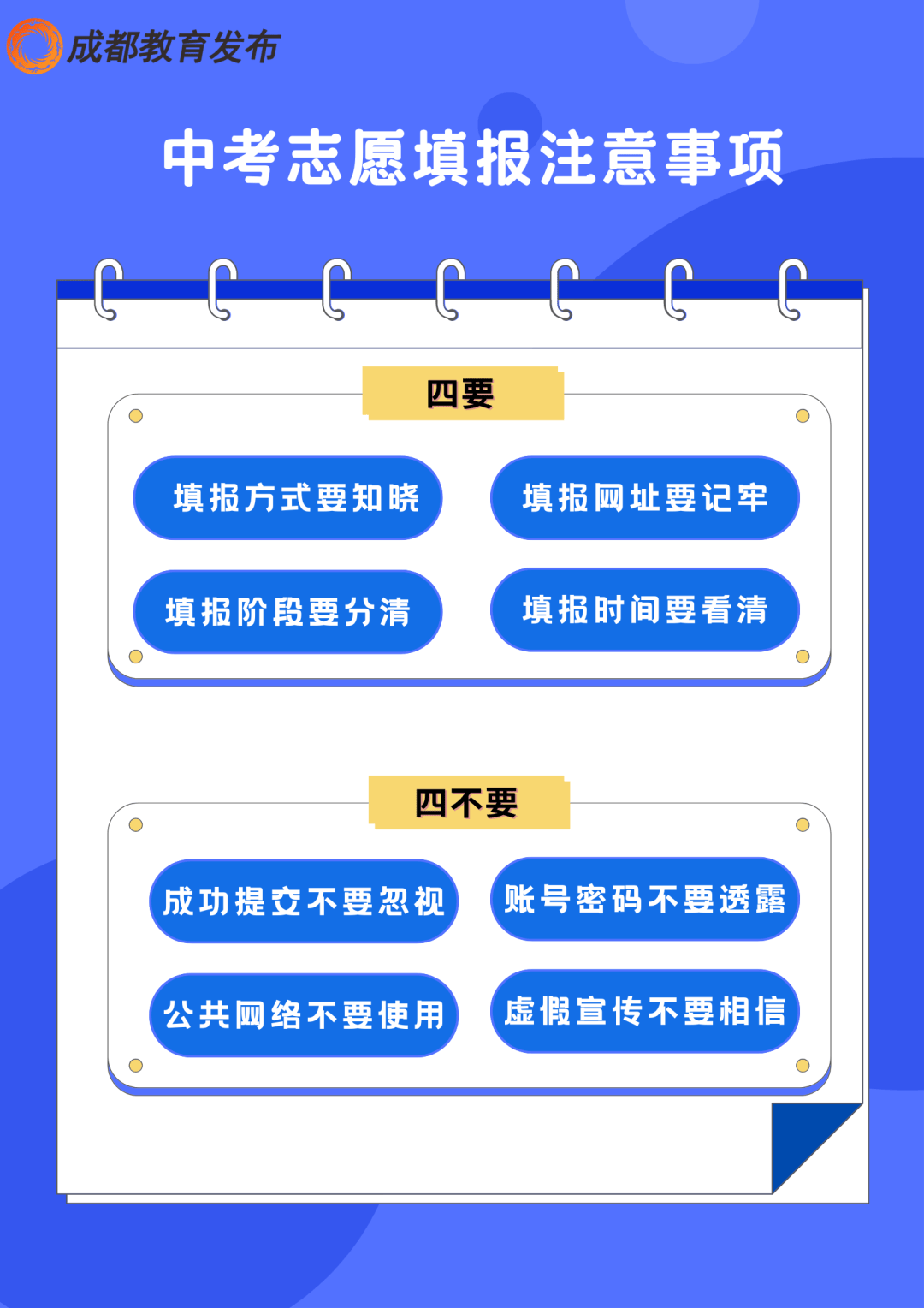 填报第一批次第6类“面向成都市非‘5+2’区域招生计划”;第三批次(三年中职)志愿以及五年制高职(含师范)志愿填报。