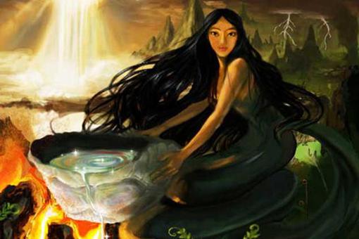 此外,女娲在中国神话中还有补天的大功。比如,《淮南子》中记载:"往古之时,四极废,九州裂,天不兼覆,地不周载,火炎而不灭,水浩洋而不息,猛兽食颛民,鸷鸟攫老弱。于是女娲炼五色石以补苍天,斩鳖足以立四极,杀黑龙以济冀州,积芦灰以止淫水。"这段话记载的就是女娲曾用五色石来补天的功劳,当时天地裂开,烈火不灭,洪水不息,大地上的一切生物都在经历着苦难,是女娲的出现不救了这一危难,杀掉了黑龙,挽救了世界。这就是说,女娲不但是炼石补天的英雄和抟土造人的女神,还是一个创造万物的伟大的自然之神,这都证明了女娲在中国的神话体系中是创世、救世、造人的"创世母神",也就是所谓的"大地之母"。