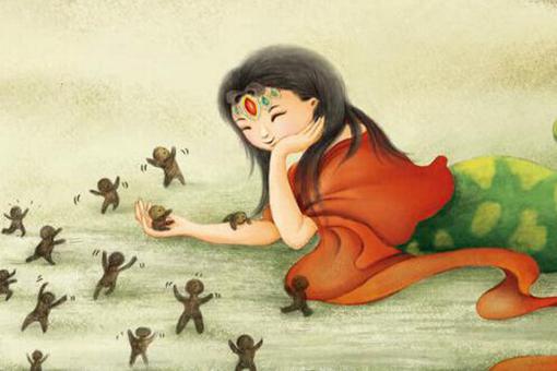 中国文化中的创世母神是女娲。比如,《山海经·大荒西经》中记载:"有神十人,名曰女娲之肠,化为神,处栗广之野,横道而处。"这段话记载的就是女娲的肠子变为了十位大神,其中女娲的肠子化为诸神,就是兼具"创世"和"造人"的神话。并且,郭璞在给《山海经》的这段话做注的时候,也曾说:"女娲,古神女而帝者,人面蛇身,一日中七十变,其腹化为此神。"说女娲人首蛇身,这显然也是认同女娲孕毓人类的说法。比如,《楚辞·天问》中也有所体现:"女娲有体,孰制匠之?"说女娲用自己的身体孕育了万物。而且,许慎在《说文》中也强调指出:"娲,古之神圣女,化育万物者也。"这也意味着女娲在中国神话中是化育万物的"创世母神"形象。