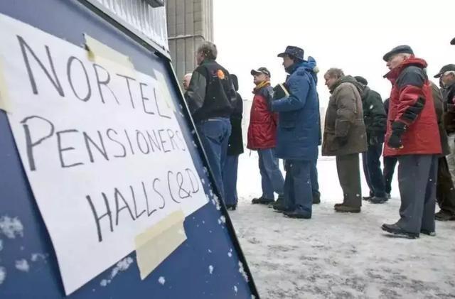 排队领取养老金和补偿金的北电员工,2009年