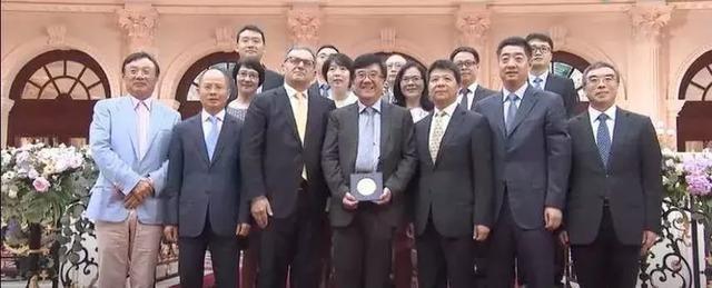 中间捧奖牌者为童文博士,2019年