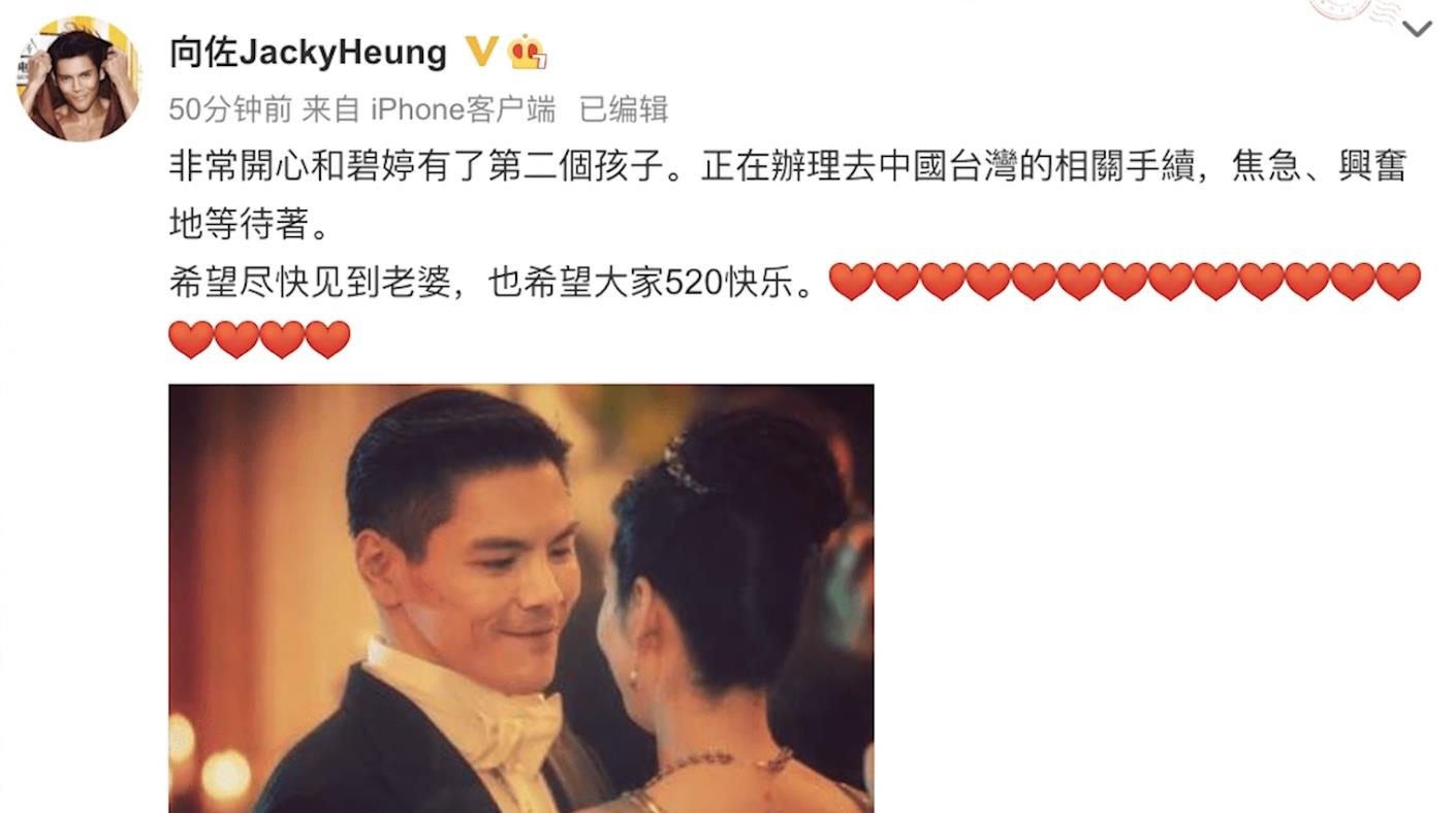 2022年5月,向佐兴奋地宣布妻子已经怀上了二胎。