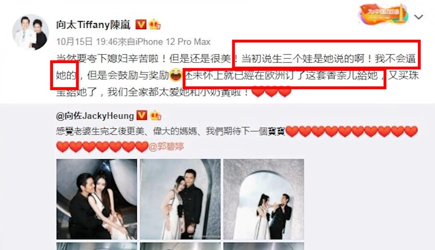这一胎郭碧婷生下了儿子,为向家凑成了一个好字。