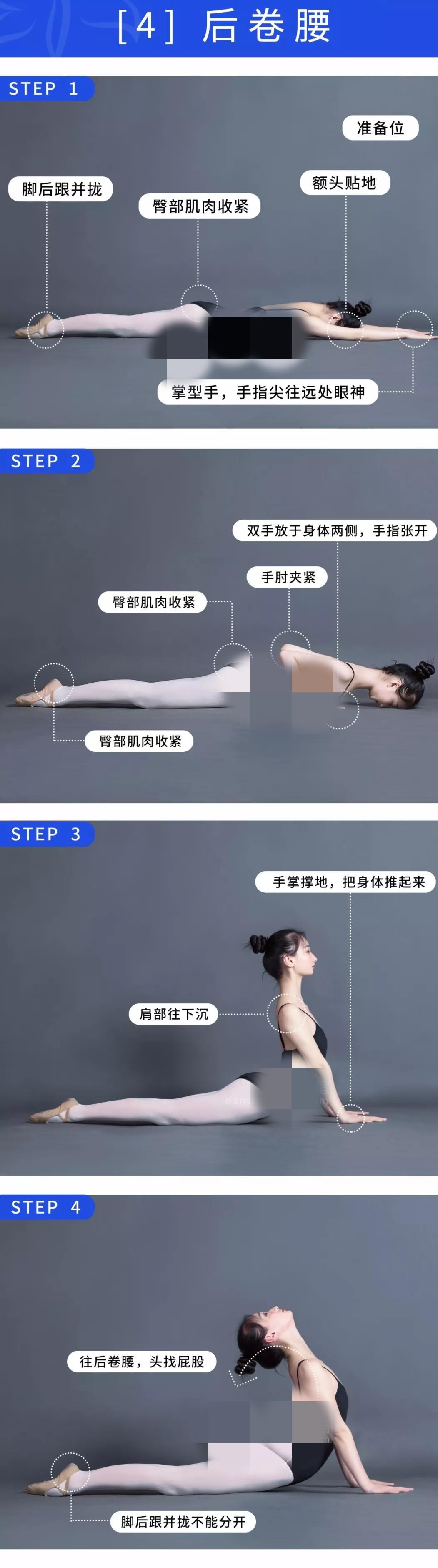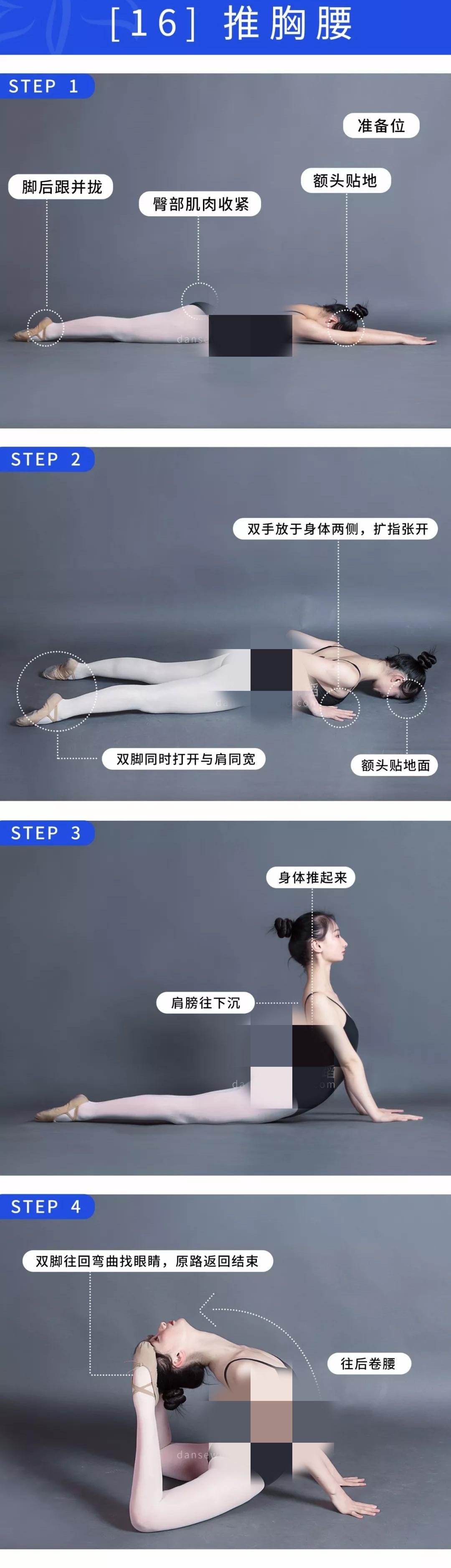 【本次基本功主要讲解】: 地面压旁腿、地面压前腿、地面搬前腿、后卷腰、地面搬旁腿、反弓撑腰、地面吸伸腿、压脚背、肩肘倒立、竖叉、耗横叉、地面压后腿、跪立下腰抓脚、吸伸旁腿、跪地推胯下腰、推胸腰。