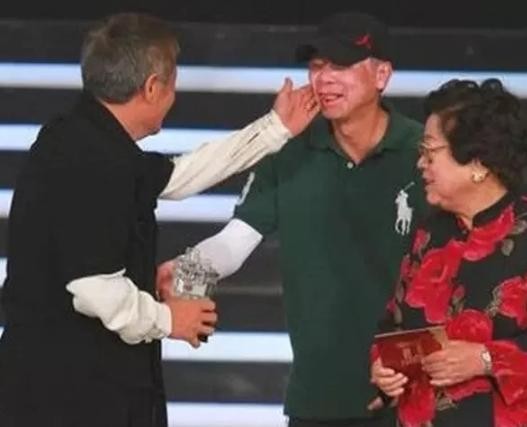 没想到在领第二个奖的时候出了点状况,当时第二个奖的颁奖嘉宾是冯小刚,在他读评语时出现了严重的口误。原词中“他是绽放在黑土地上的艺术奇葩”,结果被冯小刚念成了“他是绽放在黑社会上的艺术奇葩”。也不知道是不是故意的,总之冯小刚是把颁奖词念错了,此段话引得了台下的观众哄然大笑。