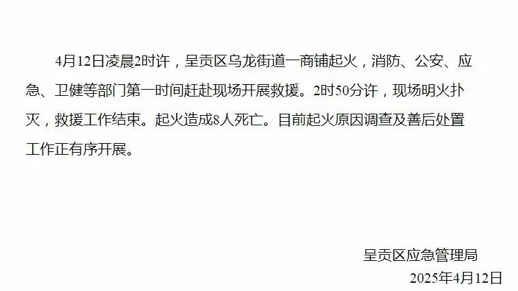 4月12日凌晨2时许,昆明呈贡区乌龙街道的一家电动车维修商铺突发大火,火势凶猛。据悉,事发时,这八位遇难者居住在商铺楼上。由于火势蔓延极快,一家人来不及逃生,最终全部在火海中丧生。