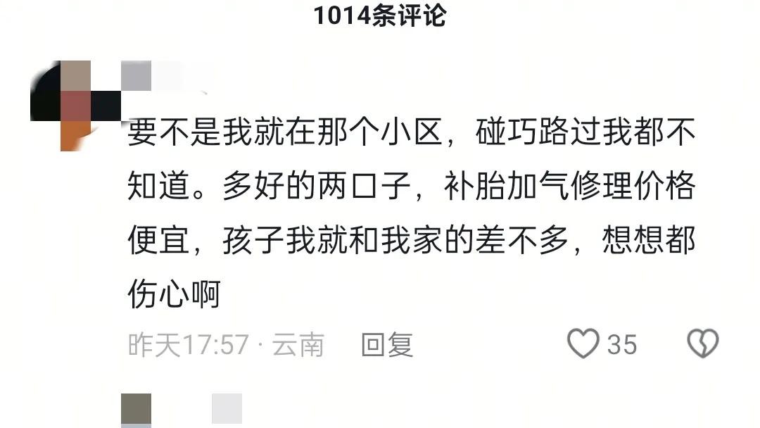 有邻居回忆,店铺老板夫妻为人和善,补胎加气修理价格便宜,孩子也和他家的孩子差不多大,周边的人都对夫妻两人的为人处世止不住的称赞。