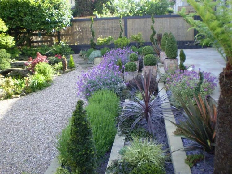 灰色砾石搭配美丽的紫色花卉、植物,是一个充满高级感的配色方案。
