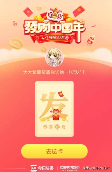 头条发财中国年集齐卡片领取红包活动内容:
