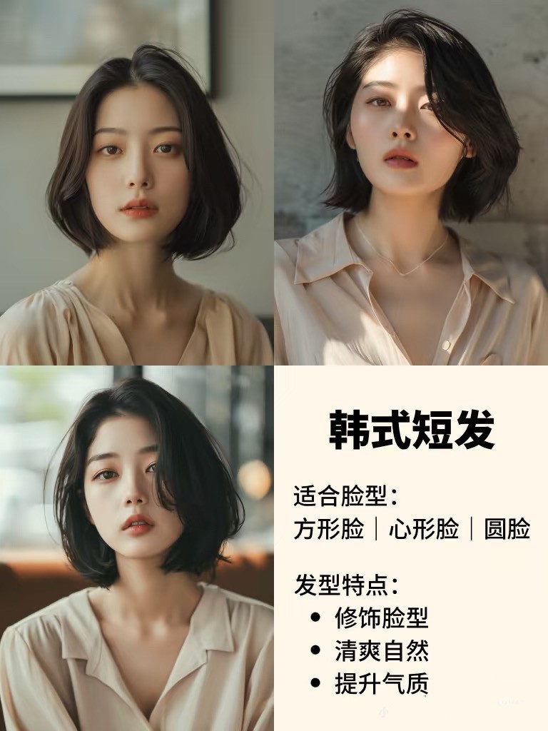 韩式短发,有一种更加清爽自然的美。尤其是高颅顶的造型,微卷的内扣弧度,可以更自然的提升气质。