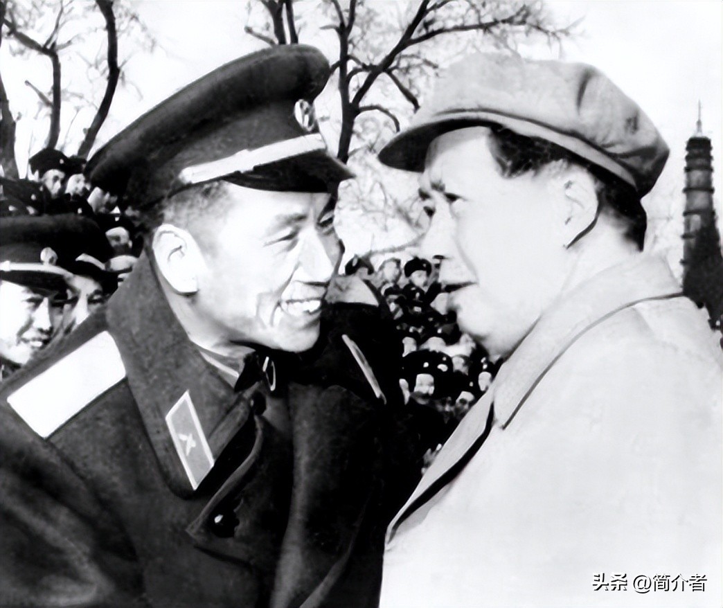 1957年毛主席在接见炮兵代表时与陈锐霆握手