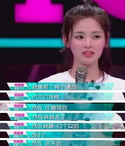 走投无路的时候,她偶然看到一则女团招募成员的广告,月薪2000元,还包吃包住,这对于身无分文的杨超越来说已经是相当好的待遇了。