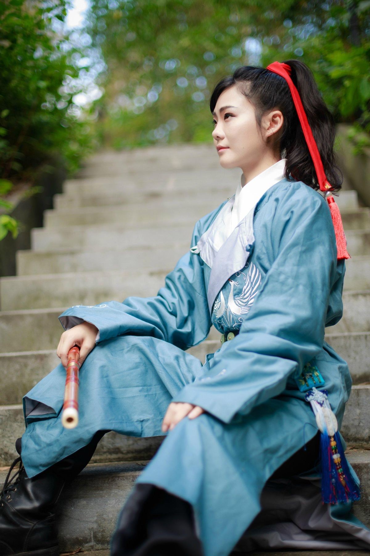 阿宁循声望去,只见床榻之上,竟坐着一个身着古装的女子。那女子面容秀美,气质高雅,仿佛是从画中走出的一般。她见到阿宁,先是吃了一惊,随后便露出了一丝羞涩的微笑。