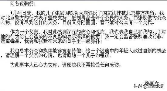 两次吸毒被抓,作为父亲的张国立都要出来给儿子擦屁股,一边替儿子道歉,一边自我忏悔,说自己教子无方。