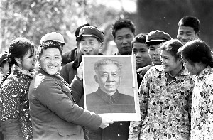 王光美离开大院时,大门外自动聚集了许多群众。她径直走出大门,向大家挥手致意,人们热烈地鼓起掌来。