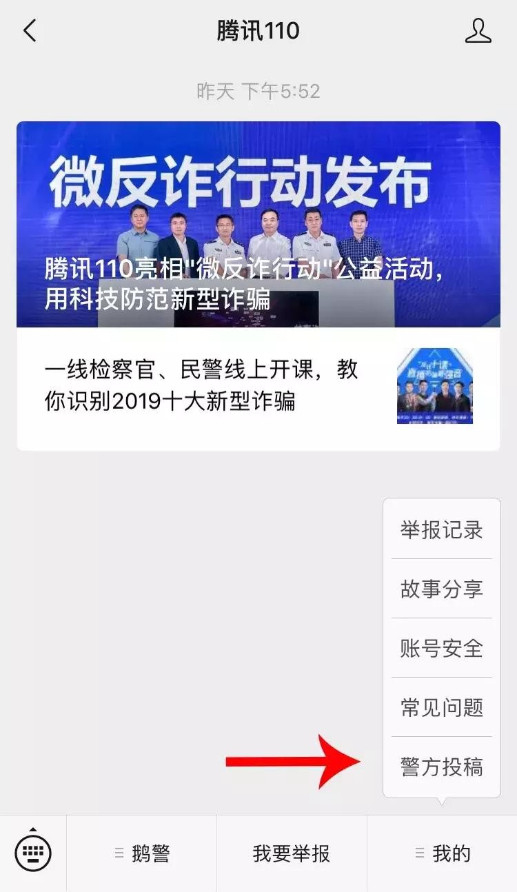 腾讯110公众号警方投稿入口