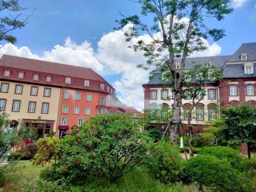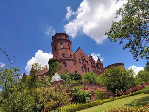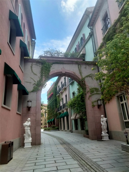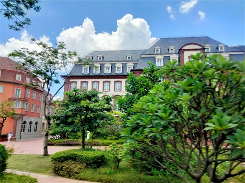 公司为了方便员工工资休息,把基地分为A、B、C、D、F、E几大公能区,每个功能区都有工作、休息、休闲、食宿的地方,几大功能区有小型铁路相连,小铁路一共有三个条,分别连接这几个区,方便的很。在基地游览,犹如到了世界各地,各式建筑应有尽有,欧式建筑古朴典雅,亭台楼阁,湖泊溪流,树木苍翠,让人流连忘返真是一个好地道,一个让人去了还想再去的地方!