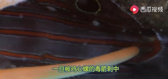 当你在海边游玩时,看到浅滩边美丽的鸡心螺壳时一定要小心,躲在壳里的鸡心螺很可能会向你投射出一支致命的毒箭。大块头的鸡心螺投出的毒箭能够刺穿你的手套、潜水服和皮肤,直接把毒液注入你的身体。鸡心螺毒液麻痹小鱼的神经系统,我们的神经系统跟小鱼相似,毒液对于我们的效果自然不用多说。