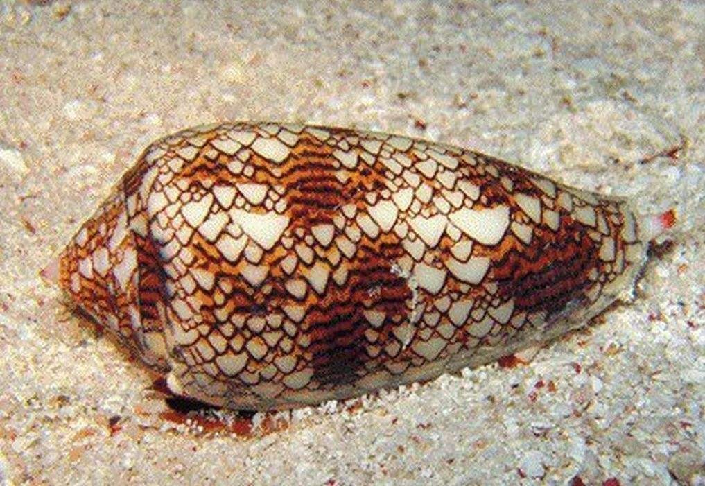 在一群大大小小的鸡心螺中,地纹鸡心螺是最毒的毒王。地纹鸡心螺还有另外一个更为贴切的名字叫卷烟螺,意思是当你被地纹鸡心螺刺中以后,在心脏停止跳动之前,你还来得及抽完人生中最后一支卷烟。