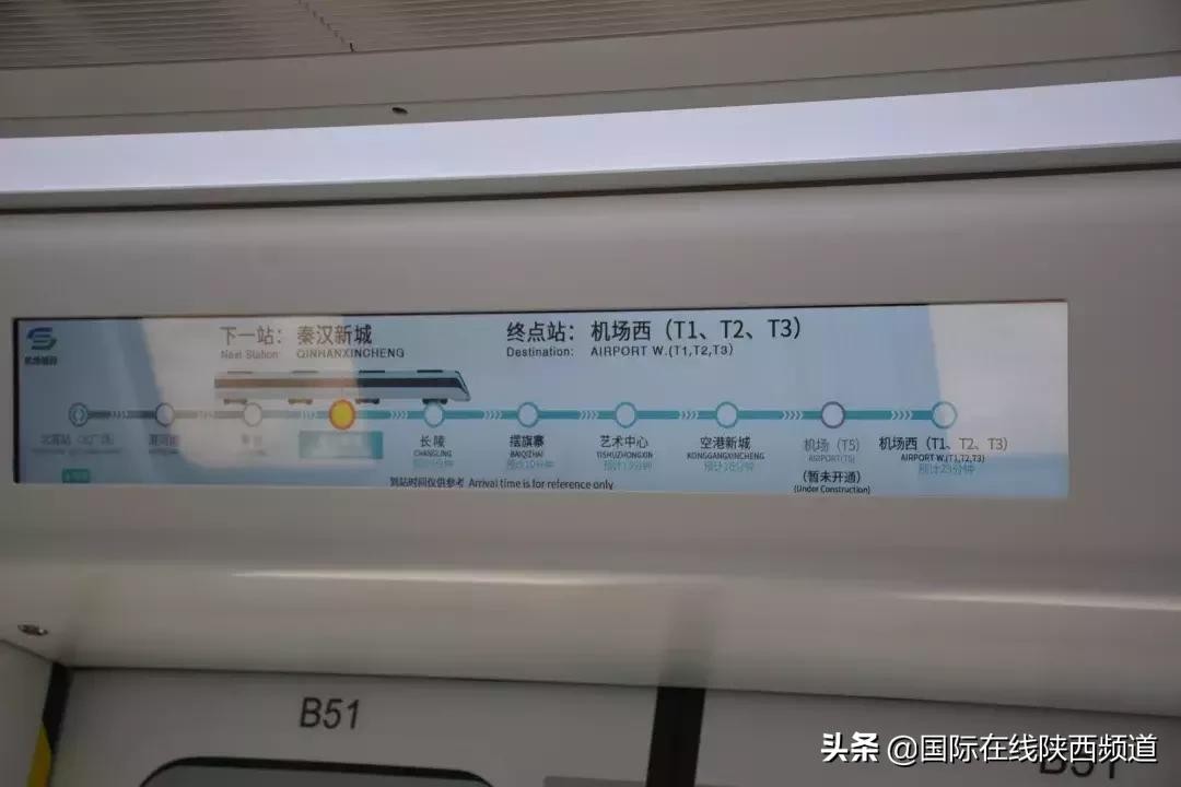 车内搭配辨识度高的动态地图和车厢端部LCD显示屏,除了有车辆运行及到站信息之外,同时考虑到轨道线路两端连接的是高铁北客站和西安咸阳国际机场,外地旅客较多,显示屏信息还包括了出入站口位置等,更加丰富全面。