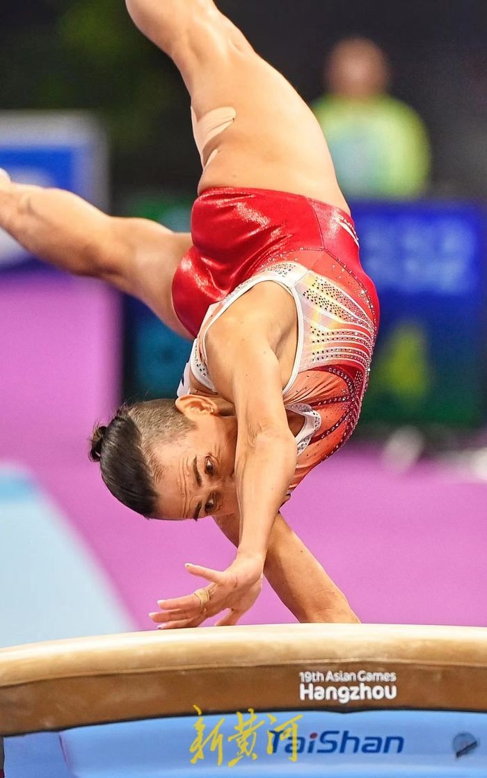 丘索维金娜是唯一一名站上杭州亚运会体操比赛赛场的乌兹别克斯坦女选手。但她并不孤单。此夜,她真正成为赛场上的焦点人物——摄影记者手中的长枪短炮、观众的手机镜头以及志愿者们的目光,异常整齐地对准这位已48岁“高龄”的体操传奇人物……