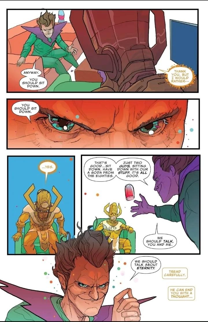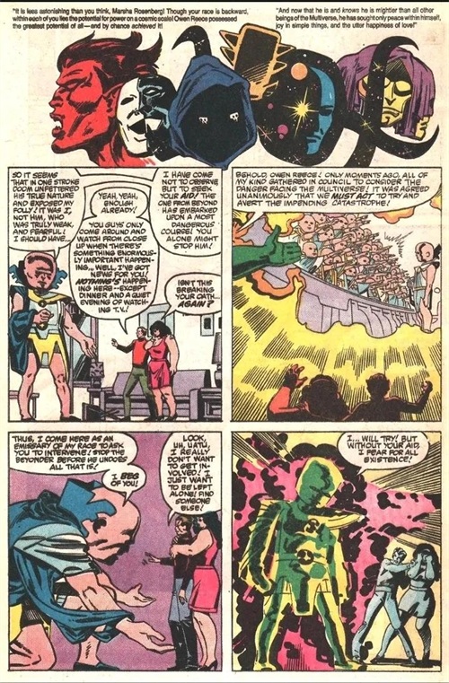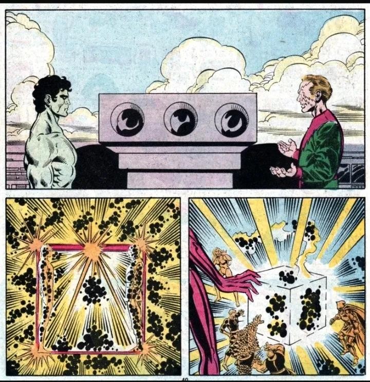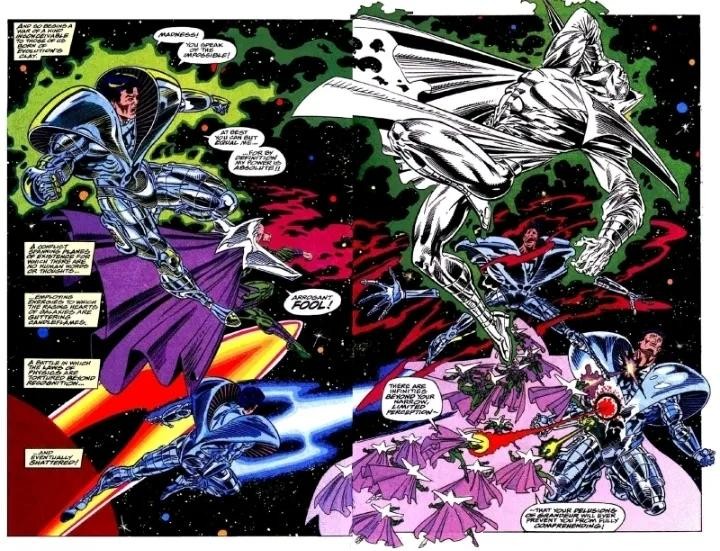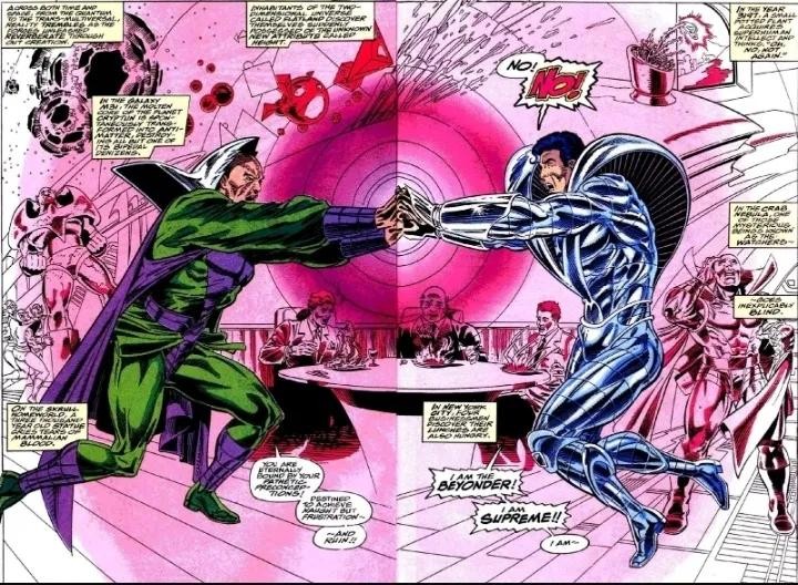 两人的战斗跨越时间和空间,从量子领域到多元现实皆被这股力量撼动。引发各种宇宙异象,使雕像流血泪、盆栽获得超人智慧、使观察者失明…