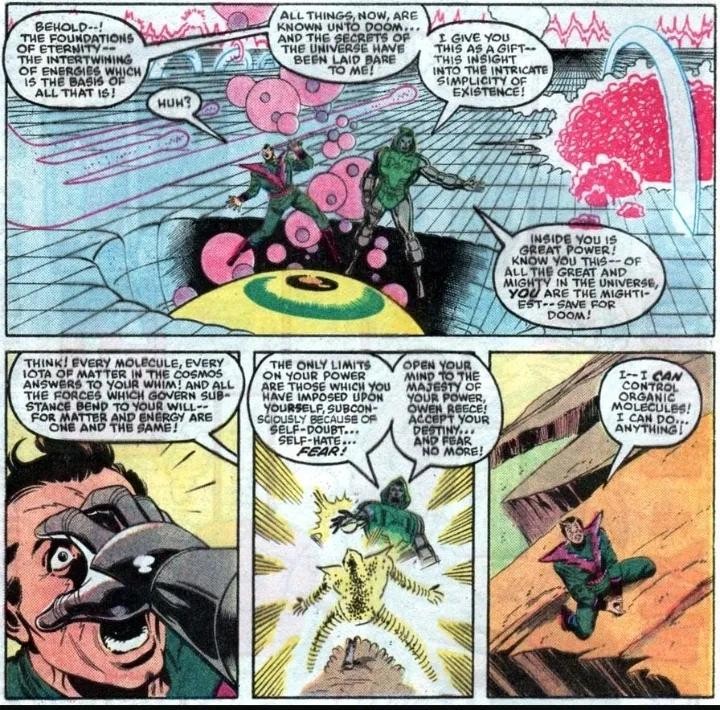 秘密战争时,末日博士解开了分子人潜意识的心理障碍,声称他力量的唯一限制是他的自我怀疑、憎恶和恐惧。