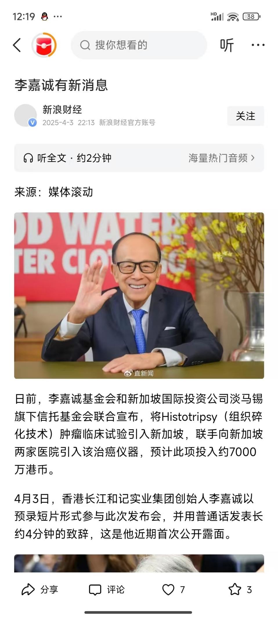 新浪财经 2025.4.3——李嘉诚有新消息