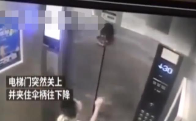 后来,电梯突然关闭并往下坠,他手中的伞被电梯门夹住,期间男孩试图将伞取下来,但没有成功。男孩不停按电梯的开门键但电梯没有反应,持续下坠。