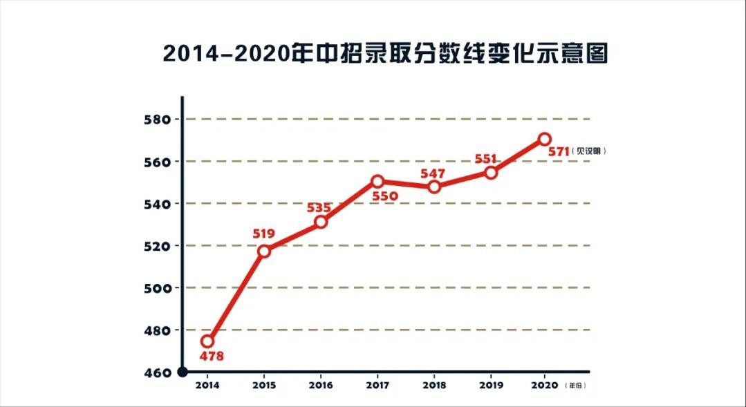 2020年计划招生8个班,400人,含体育生8人,艺术生2个班。实际录取400人。统录分数线 476分。