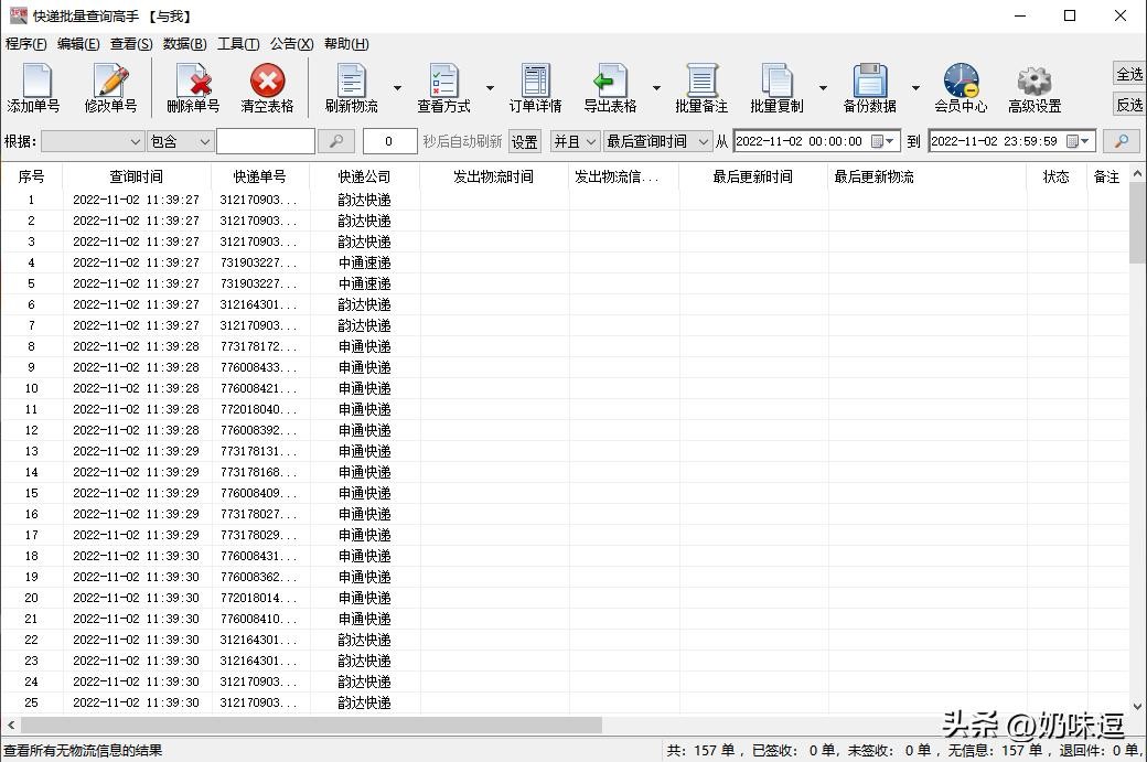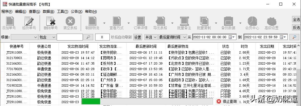 等全部查询完毕,就可以看到每个快递单号的物流,而且物流跟官网都是同步的