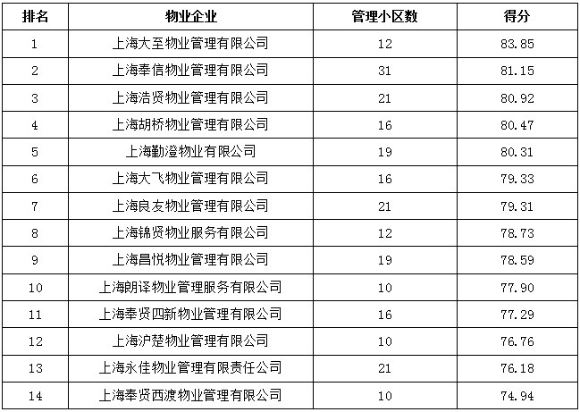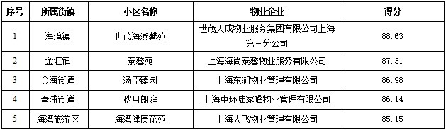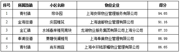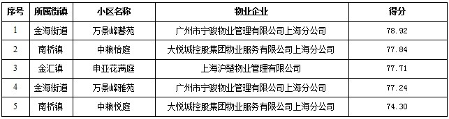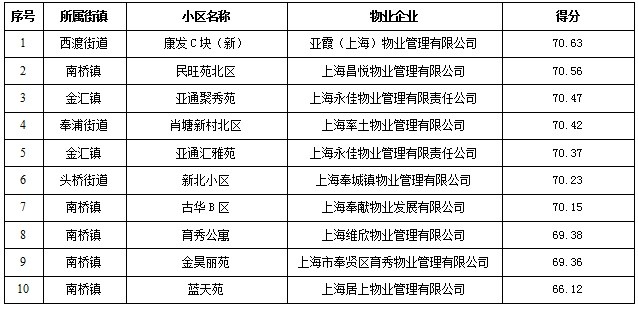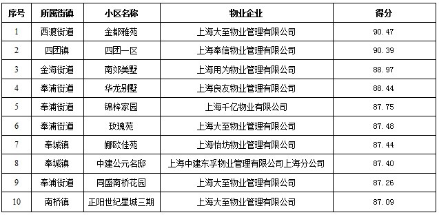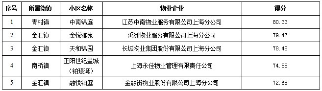 街镇(开发区)排名:以其辖区内参评住宅小区季度测评分值的平均值,结合在管小区数量计分规则形成排名结果。
