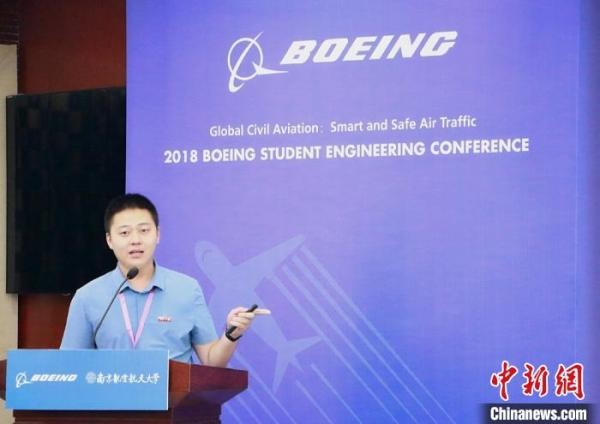 孙书剑在波音学生工程论坛上作报告。 孙书剑供图