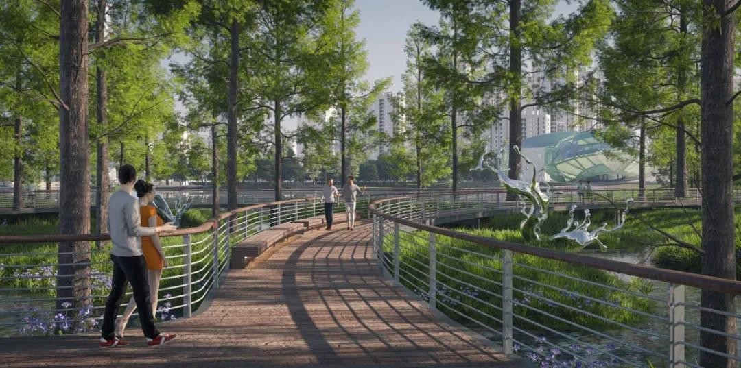 该公园的设计思路源于两部分:良渚文化和运河文化!为此精心打造六大景点:星河揽月、芳渚艺林、玲珑绿芯、渚上星湾、水韵良渚、玉见未来。