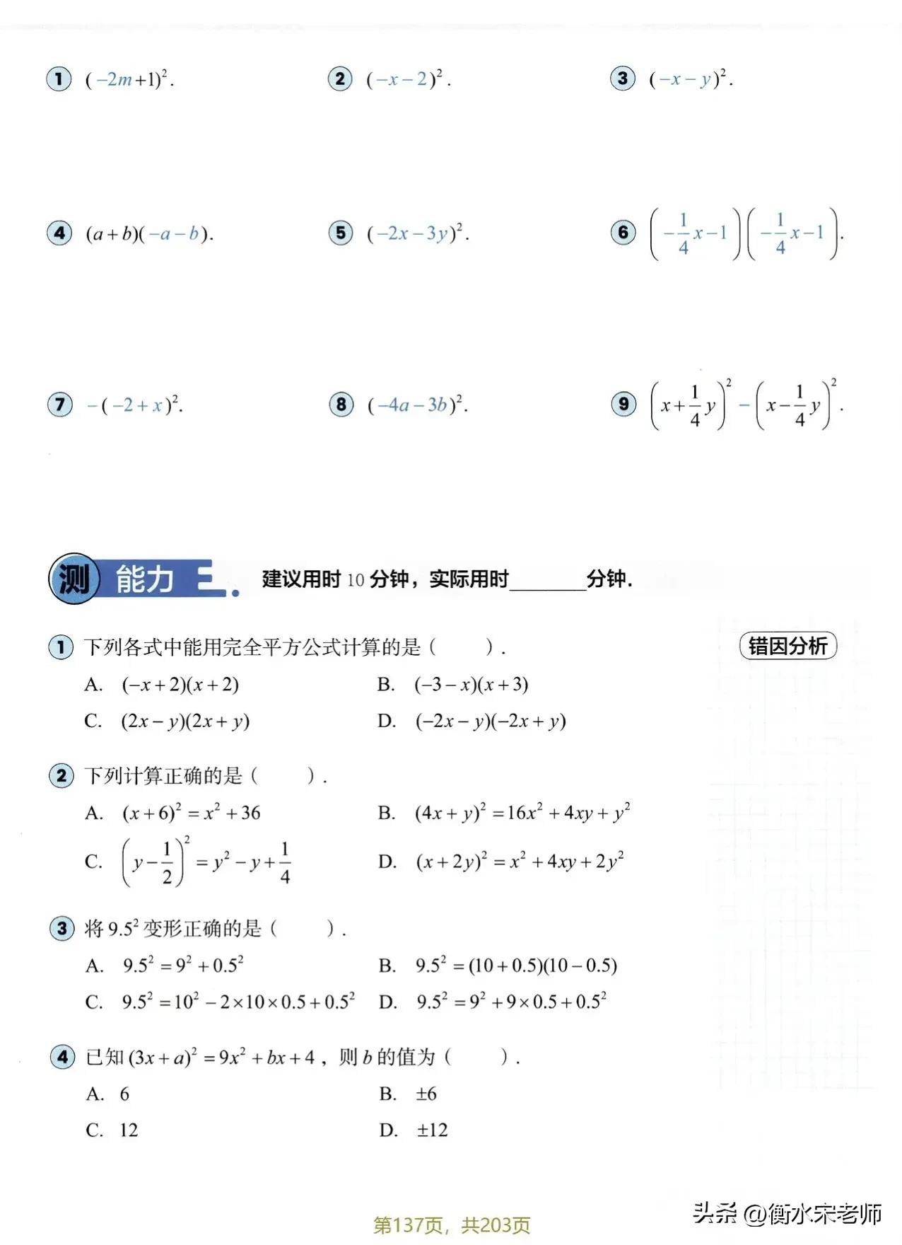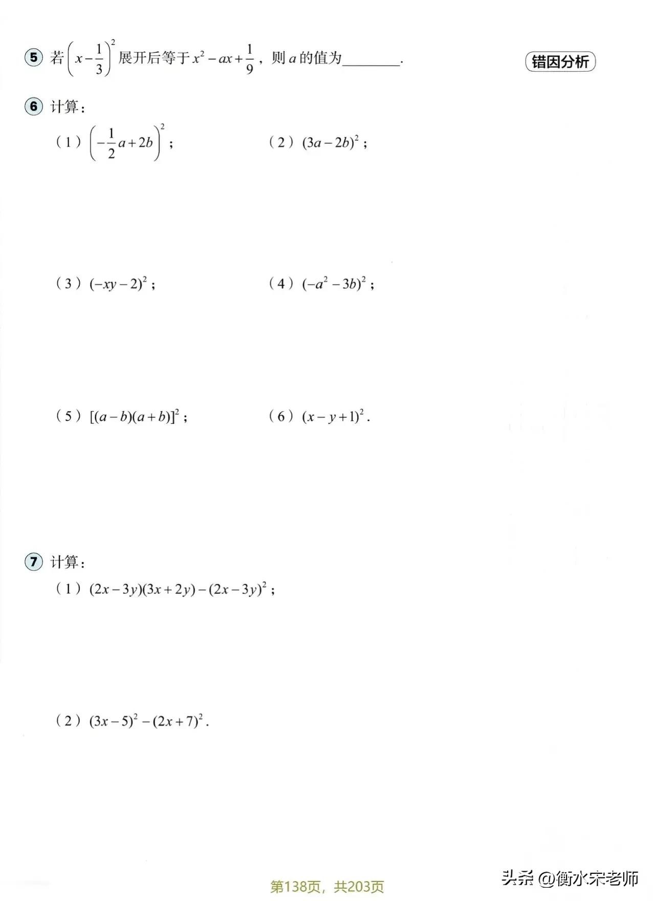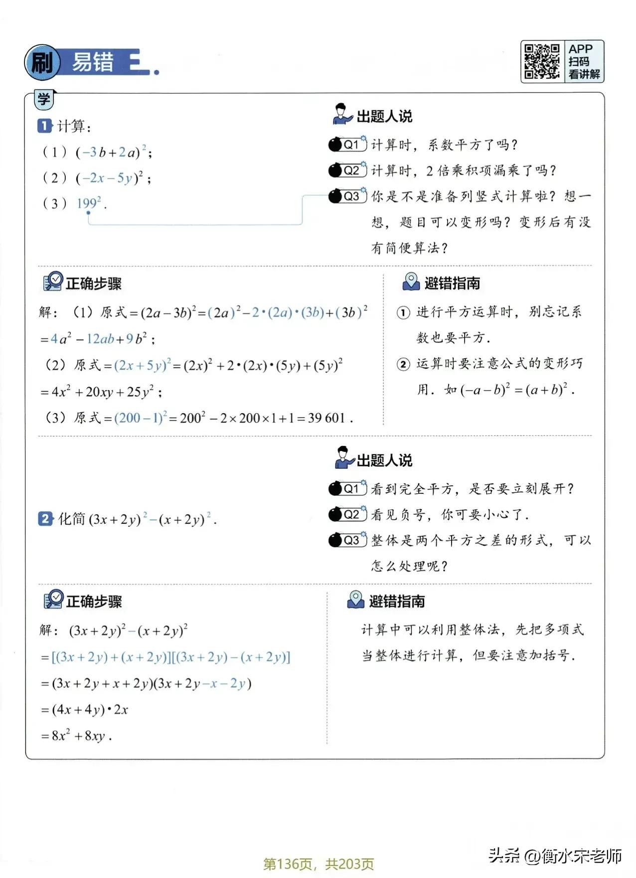 在计算时要注意出错点。在平方时系数也要平方。一定要看清正负号。这个板块儿比较简单,多做练习就可以了。