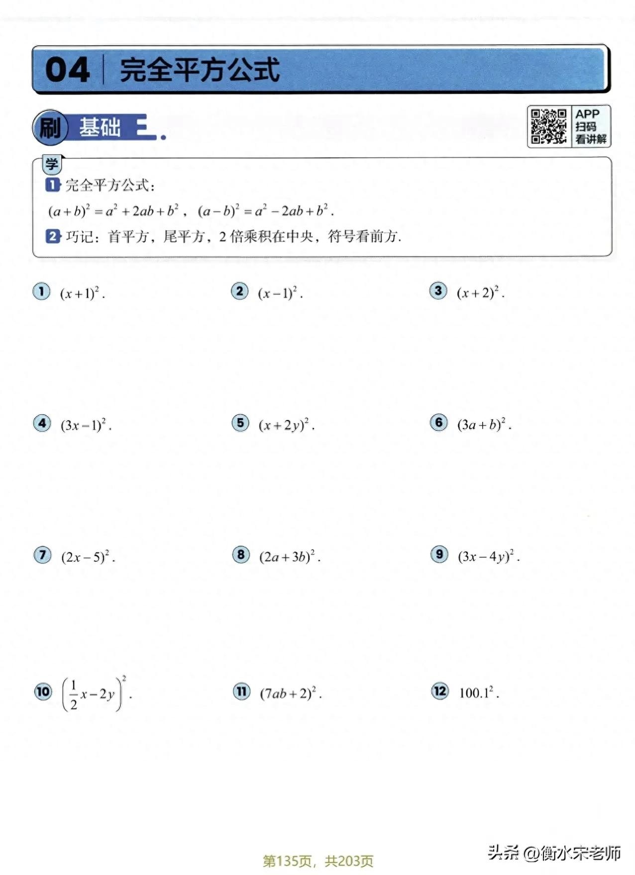 初中数学完全平方公式。值得收藏。