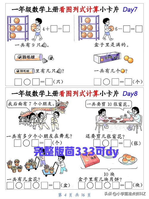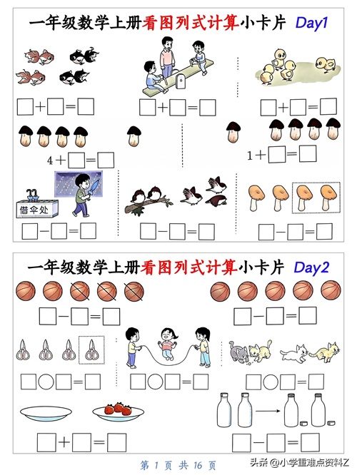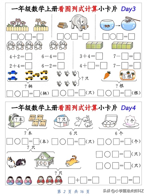 一年级数学看图列式计算小卡片已更新!赶紧练起来!