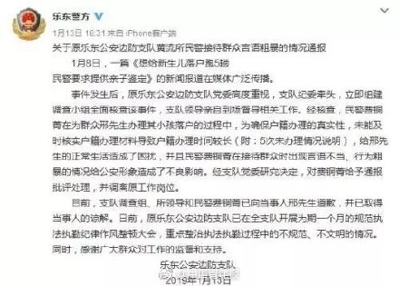 给新生儿落户跑5趟未办理,涉事民警致歉并被调岗