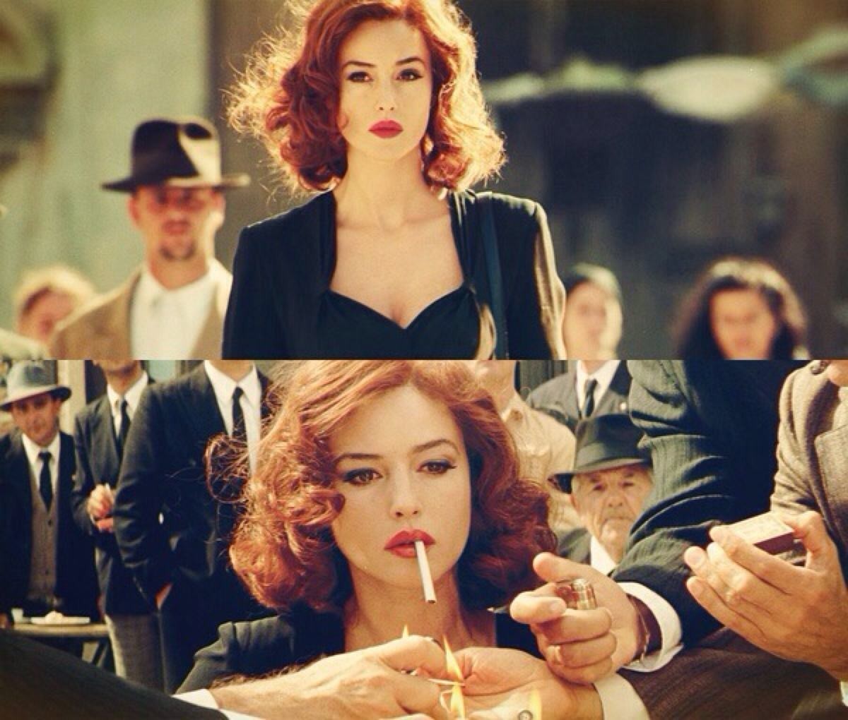 《西西里的美丽传说》里,玛莲娜因为自己的美貌,在生活在男性凝视下。男人们一开始只是幻想,但随着其丈夫战死的消息,大家开始公然开她黄腔,大众也造谣她生活放浪,直到最后一个律师对她进行了身体上的性侵,她也成为了德国军妓。