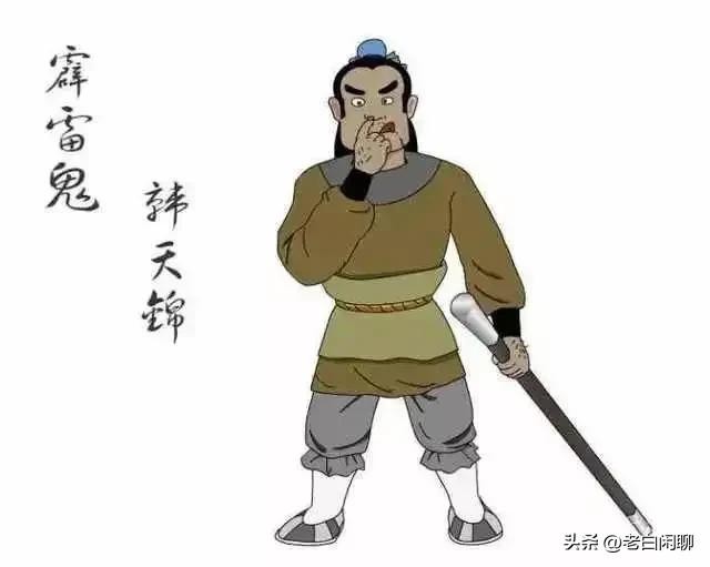 韩天锦,彻地鼠韩璋的养子,掌中一条熟铜大棍,力猛棍沉,可惜的是脑子不太好使,有点儿缺心眼儿。