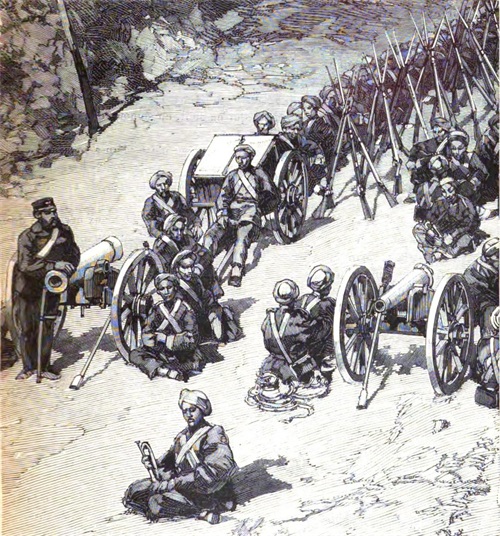他们的火枪在600米之内都有不错的杀伤力。他们待在壁垒或堑壕后方时射术良好,是要等到敌军进入射程后才在军官命令下开火,而后根据实际状况调整准星,以此节约弹药。不过,要是在竹幕或者封闭的工事后方,那就和大炮一样没什么射界了。他们的步枪型号不错,有不少现代英美枪支,但弹药并不统一,步枪品种各式各样:击发枪、烟盒枪、栓动枪、马蒂尼-亨利枪、雷明顿枪、斯潘塞枪、温切斯特枪都有。他们的弹道低平,我们的伤员主要是被射中腿部。