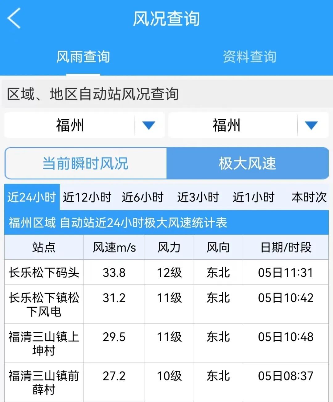 目前福州长乐已出现12级大风