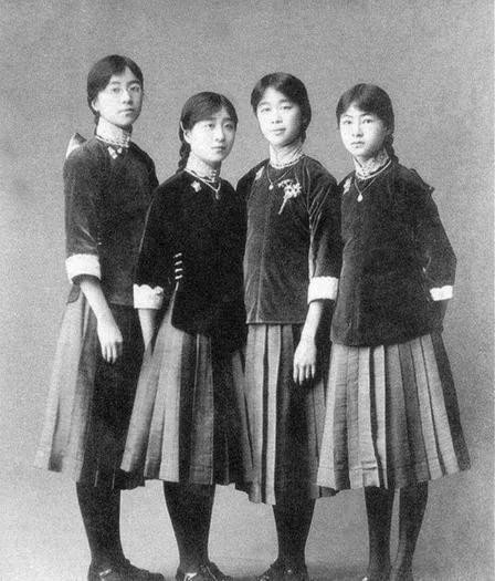 第3张照片是在林徽因8岁的时候拍摄的,那时林徽因和自己的表姐表妹们一起,照片上最左边的是林徽因,可以看得出她似乎是在思索着些什么。
