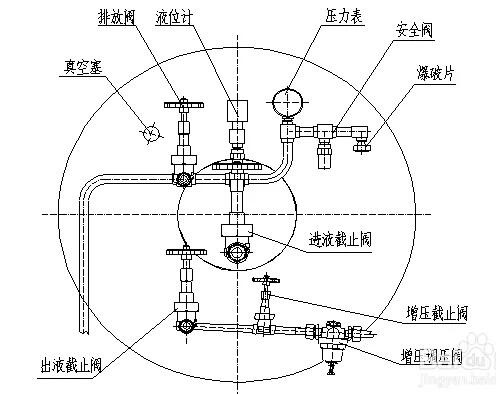 增压调节阀:低温液体通过此阀进入增压器转化为气体,回到内胆,从而使瓶内压力达到增压调节阀的设定值。