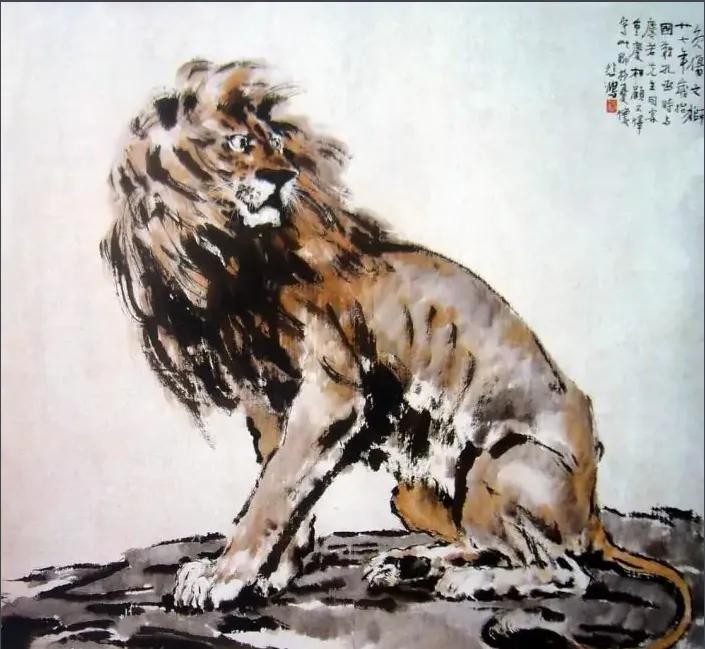 创作于1938年,当时日寇侵占了大半个中国,国土沦丧,生灵涂炭,徐悲鸿怨愤难忍。他画的负伤雄狮,回首相望,含着无限的深意。他在画上题写:“国难孔亟时与麟若先生同客重庆相顾不怿写此以聊抒怀。”表现了作者爱国忧时的思想。这是一幅现实主义和浪漫主义结合的画作。中国被称作东方的“睡狮”,被日本帝国主义侵占了中国东北大部分国土,“睡狮”已成了负伤雄狮。