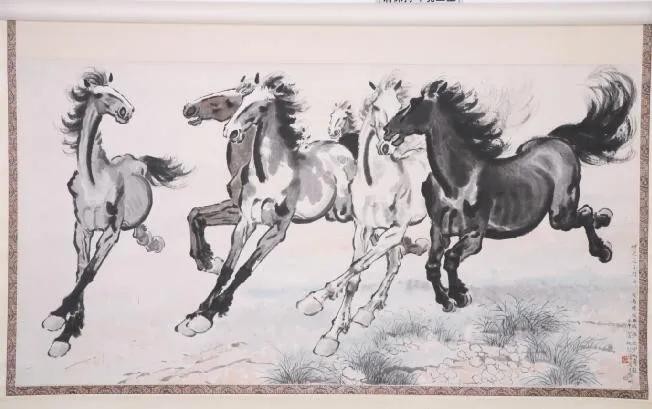 徐悲鸿的群马,是徐悲鸿马中的重要代表作之一。群马取材于1940年克什米尔当地的骏马,徐悲鸿当时见到此马格外兴奋,《群马》灵感油然而生。与其他作品不同的是,主要描绘了两匹背向观众的马,后面又配一匹侧向的马,为了使画面有变化,又在右边画了一匹低首觅食的马。
